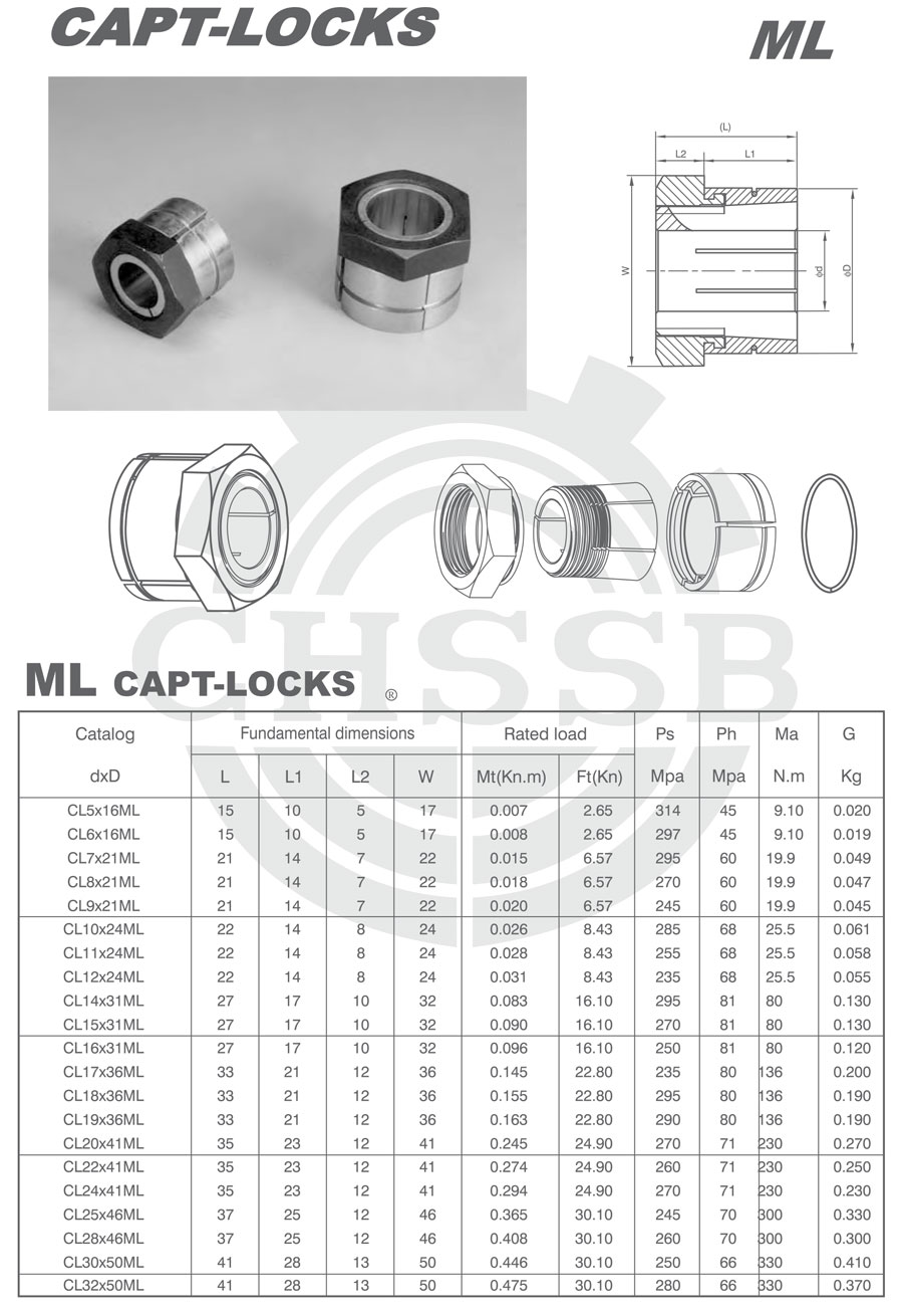 Range of product: ANSI/DIN:(ML) Inch size product (Apply to ANSI market) Metric size product (Apply to DIN market) ML Type CAPT-LOCKS