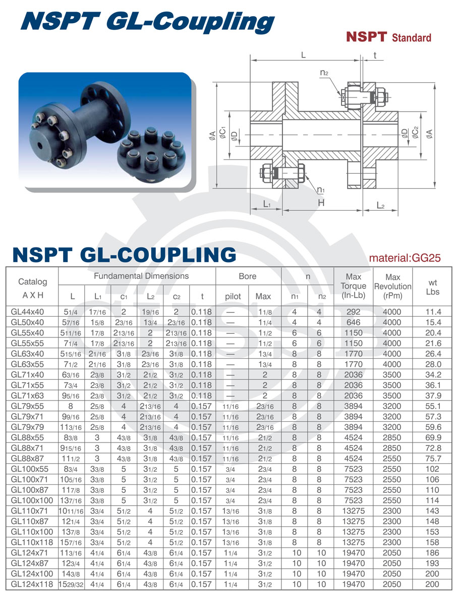 Range of product: ANSI/DIN:(GL44-GL124) Inch size product (Apply to ANSI market) Metric size product (Apply to DIN market)