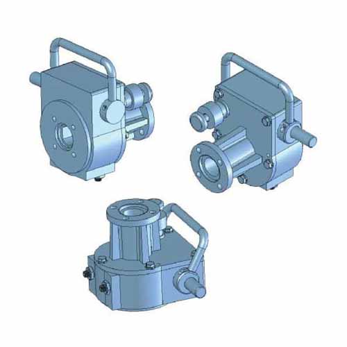 ●90 degree turning clutching drive device which can perform manual or pneumatic drives suitable for ball