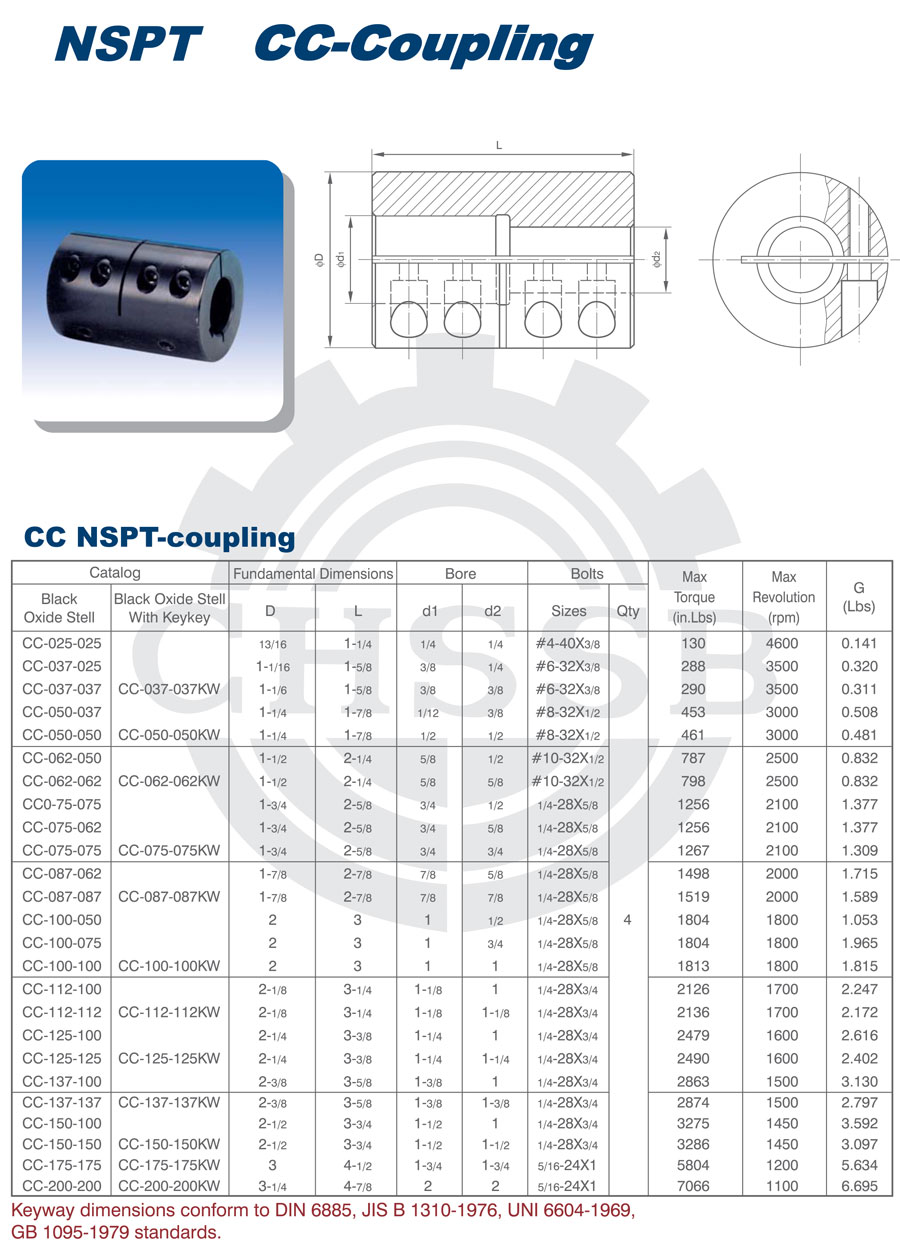 產(chǎn)品范圍: 美標:(CC) 英制尺寸產(chǎn)品(適用于美標市場) CC型聯(lián)軸器
